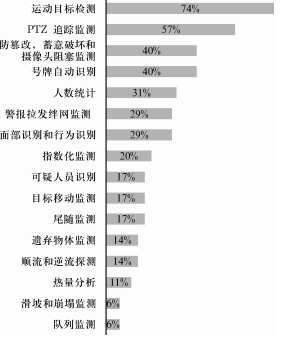 增加視頻監(jiān)控開支和多種攝像機(jī)技術(shù)的應(yīng)用,都將推動(dòng)視頻應(yīng)用分析的使用。雖然視頻分析已經(jīng)通過了初步的挑戰(zhàn)(誤報(bào),成本較高等),但26%的受訪者正在使用視頻分析,另有25%的受訪者聲稱有可能會(huì)在未來的12個(gè)月內(nèi)使用視頻分析。