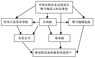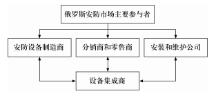 除此之外,地產(chǎn)公司、各大銀行、零售店、能源企業(yè)(石油和天然氣)等實(shí)體機(jī)構(gòu)同樣作為安防產(chǎn)品的購買商和終端用戶,他們的購買力也不容忽視,總需求量占俄整個(gè)安防市場(chǎng)的50%以上。在上文的俄羅斯安防市場(chǎng)背景中已經(jīng)提到,俄安防企業(yè)主要為分銷商和系統(tǒng)集成商,同時(shí)還包括少量產(chǎn)品制造商、解決方案供應(yīng)商、安防產(chǎn)品零售商和安防設(shè)備安裝和服務(wù)公司,共同組成了俄羅斯安防市場(chǎng)的參與者,基本結(jié)構(gòu)圖如下: