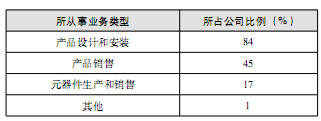 俄羅斯各安防企業(yè)所從事的業(yè)務(wù)活動(dòng)也不盡相同,基本業(yè)務(wù)活動(dòng)分為四類,包括產(chǎn)品設(shè)計(jì)和安裝、產(chǎn)品銷售、元器件生產(chǎn)和銷售以及其他,所占比例如下表: