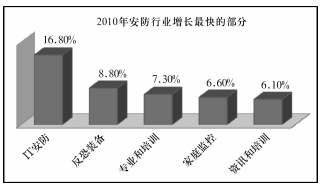 2010年法國22個(gè)安防領(lǐng)域中,有9個(gè)實(shí)現(xiàn)了正增長。那些增長率最好的行業(yè)依次為:視頻監(jiān)控增長了16.8%,反恐裝備增長了8.8%,安防專業(yè)教育和培訓(xùn)增加了7.3%,家庭監(jiān)控增加了6.6%,資訊和工程增加了6.1%。而防盜竊報(bào)警、個(gè)人防護(hù)裝備、工業(yè)安全設(shè)備這幾個(gè)領(lǐng)域呈現(xiàn)出兩位數(shù)的下降,其他的領(lǐng)域則呈現(xiàn)漲跌互現(xiàn)的局面。